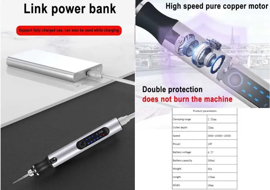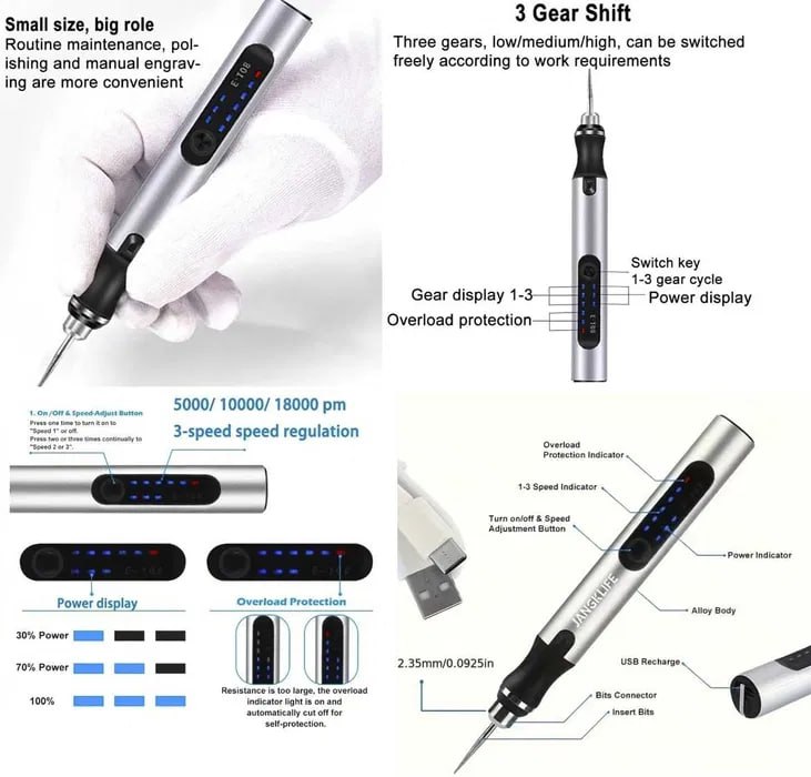 USB – Гравировочная ручка фрезер гравер Dremel + насадки
